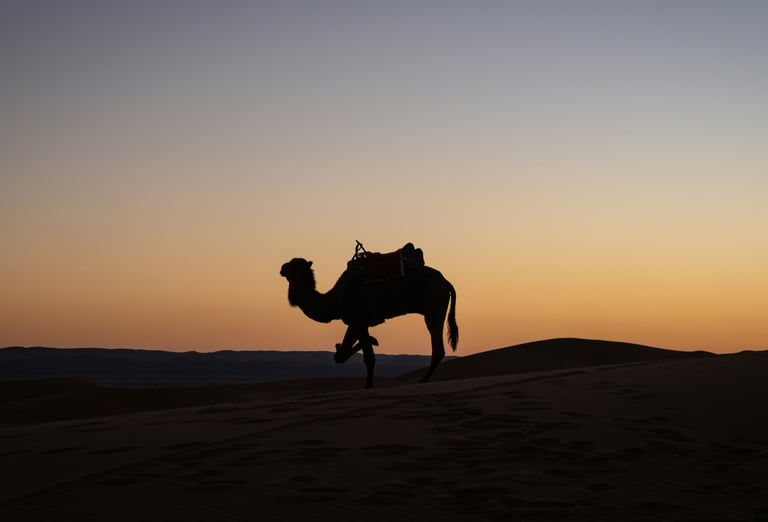 Spend the day at leisure in the heart of the Sahara. Begin with an optional camel trek across the dunes followed by a scenic walk to explore Erg Chigaga’s tallest sand formations. Alternatively, relax at camp and soak in the peaceful desert surroundings. After lunch, consider a short 4x4 excursion to discover more of the desert’s hidden wonders. Return in time to experience another spectacular sunset, complemented by an evening of traditional music and delicious cuisine. Overnight again in your desert camp.